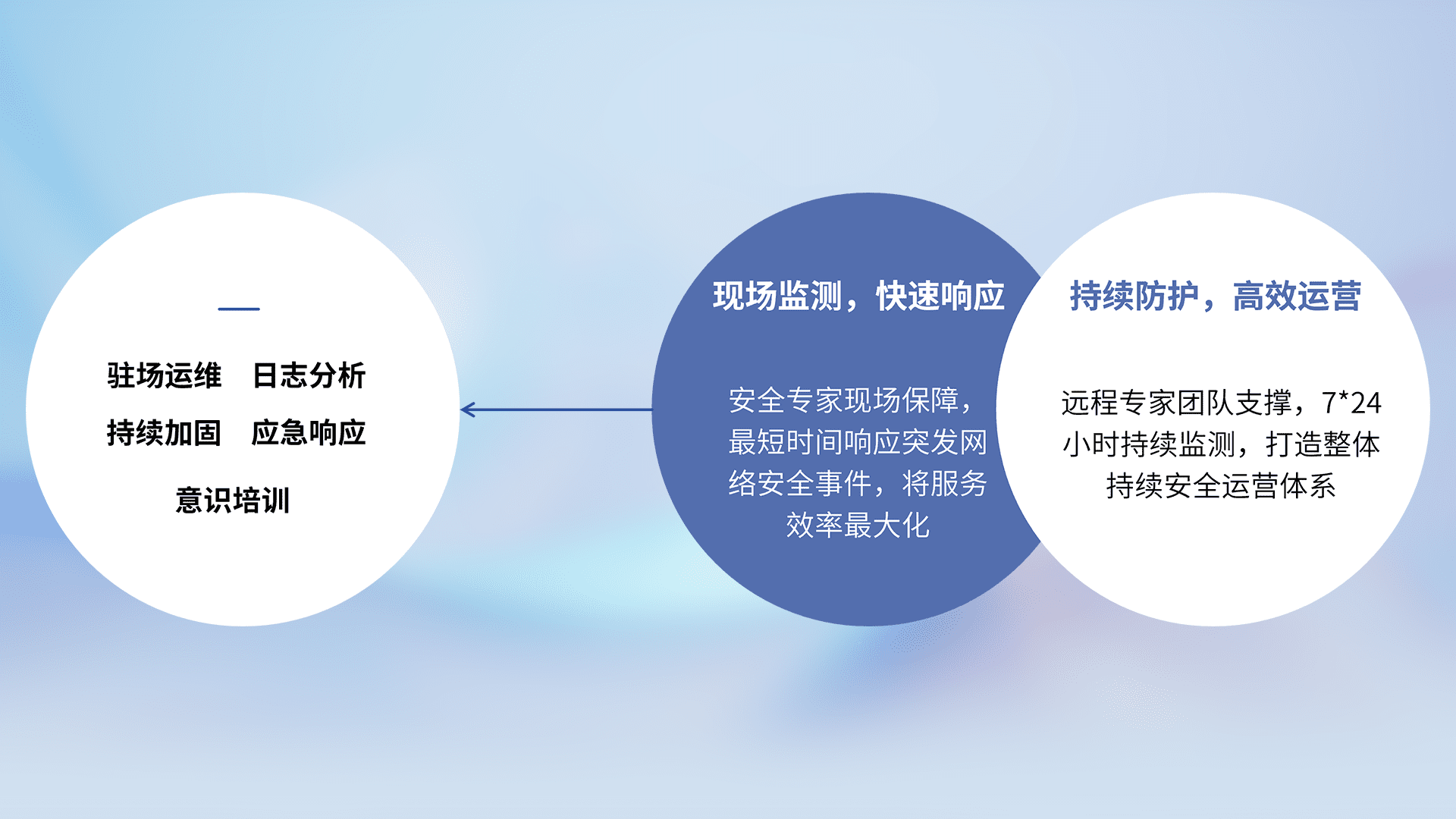 7X24小时持续监测安全事件,保持安全策略有效性,降低资产脆弱性风险,,精准拦截黑客攻击,,减少被黑客利用的机会,,第一时间遏制,,,,降低损失。。
